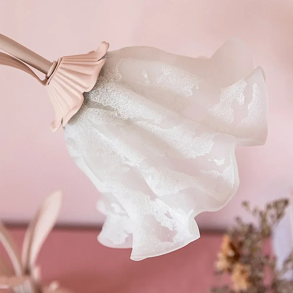 2. Elegant Floral Design: Frosted patterned glass shaped like flower petals creates a soft and romantic glow.