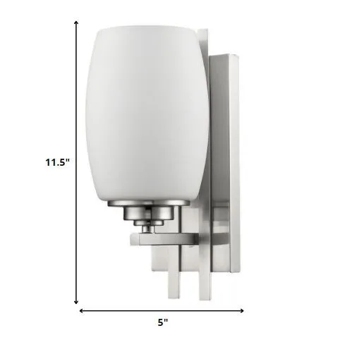 Enhance your interior décor with this modern silver wall sconce, a perfect blend of function and style. Its geometric design and frosted shade create a timeless lighting solution for any modern home.