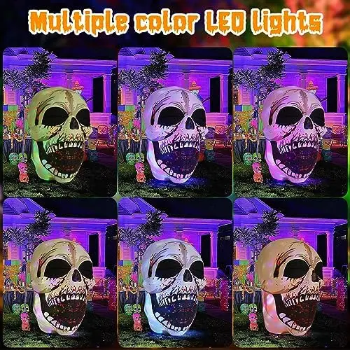 GOOSH 4FT Halloween Inflatable Skull with Colorful LED Lights