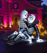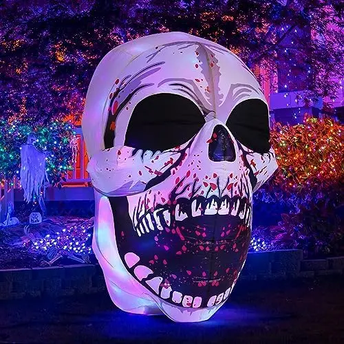Get ready to spook your neighborhood this Halloween with the GOOSH 4FT Inflatable Skull. Designed with vibrant, dimming colorful LED lights, this inflatable brings a glowing and eerie atmosphere to your yard, party, or haunted house setup. Made from high-quality polyester, itβs lightweight, portable, and built to last through the season. Perfect for both indoor and outdoor use, this scary skull inflatable will be the highlight of your Halloween decorations.