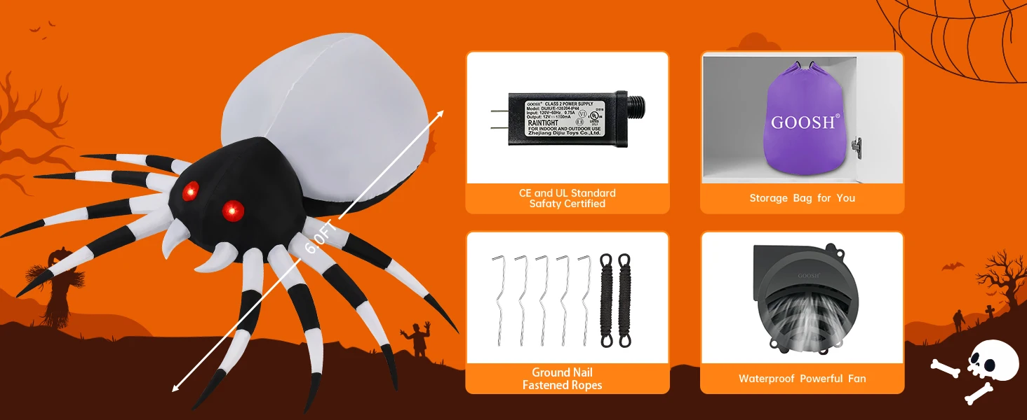 Crafted from high-quality polyester, this inflatable spider is durable, lightweight, and weather-resistant, making it suitable for both indoor and outdoor use. With fast inflation and easy setup, you can quickly decorate your home or event. Simply plug it in, watch it come alive, and enjoy a spooky yet magical Halloween atmosphere.