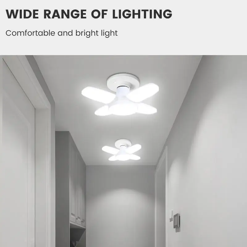 Upgrade your garage, kitchen, or utility space with this LED 4-Leaf Foldable E27 Pendant Light. Designed for maximum illumination and energy efficiency, this light provides bright, warm white lighting while being easy to install and maintain. Its foldable leaf design allows you to adjust the light distribution according to your space needs, making it perfect for garages, basements, workshops, storage rooms, and attics.