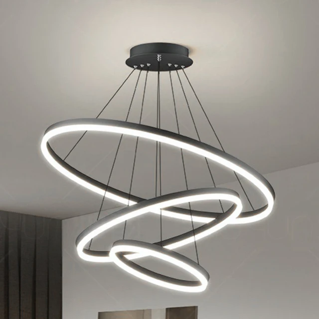 Elevate your interior with this Modern LED Rings Pendant Lamp, a Nordic-inspired luxury chandelier designed for living rooms, dining rooms, bedrooms, and hotel halls. Featuring adjustable LED rings and a modern plated aluminum design, this pendant light combines elegance with high brightness, creating a warm and inviting atmosphere in any space.