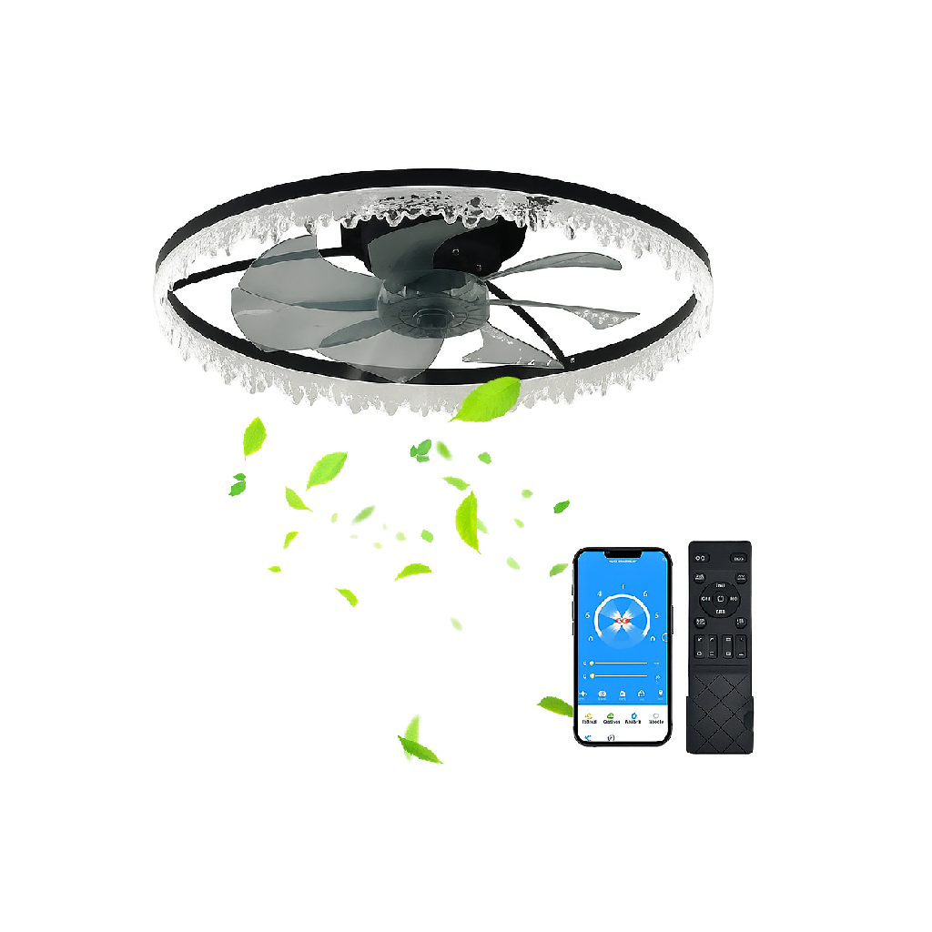 Upgrade your home with the ARLGSITE 24-Inch Smart Black Ceiling Fan with Light, designed for elegance, comfort, and functionality. This modern flush mount ceiling fan combines a luxurious crystal-ring design with energy-efficient LED lighting and a powerful silent motor. Its sleek low-profile design is perfect for bedrooms, dining rooms, and living spaces with low ceilings.