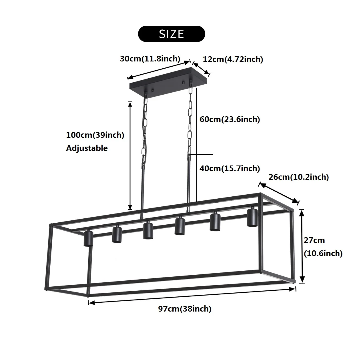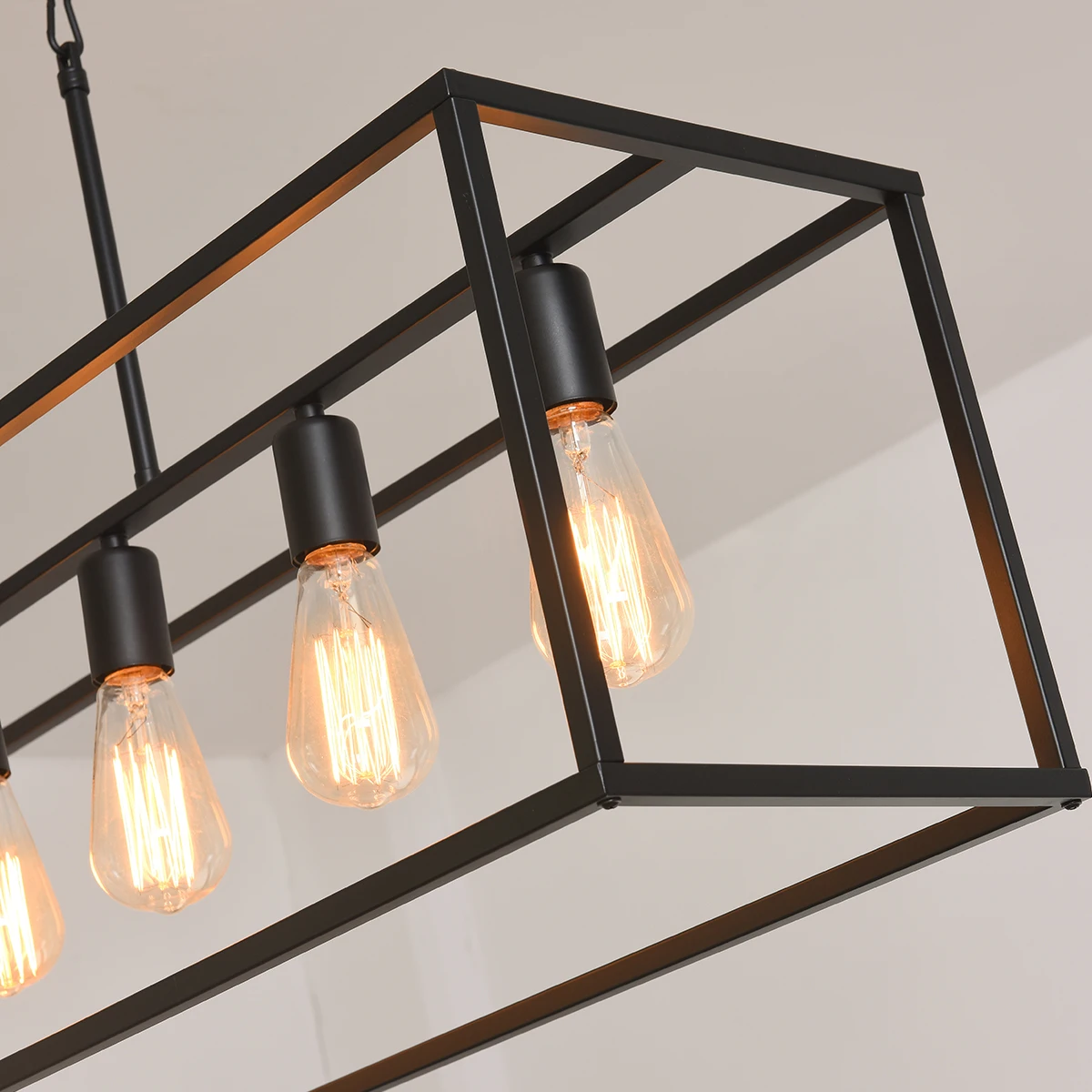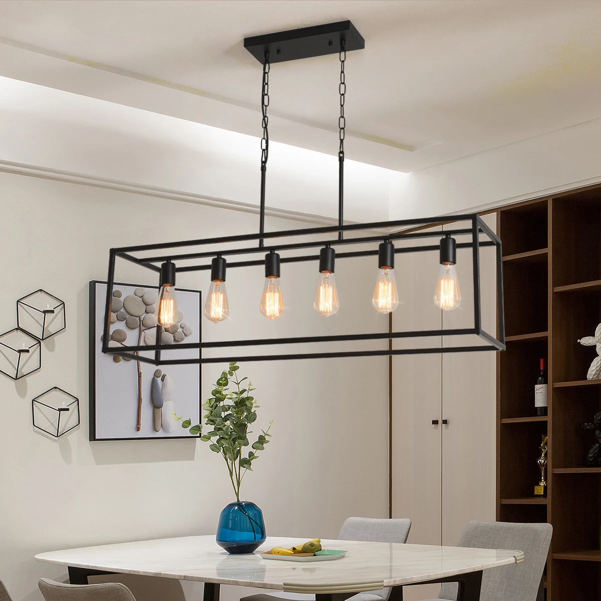 The Garwarm 6-Light Rectangle Farmhouse Chandelier combines modern simplicity with rustic charm, making it a perfect lighting solution for your kitchen island, dining room, living room, or bar area. Designed with a sleek black iron frame, this linear chandelier enhances any interior with its elegant industrial style.