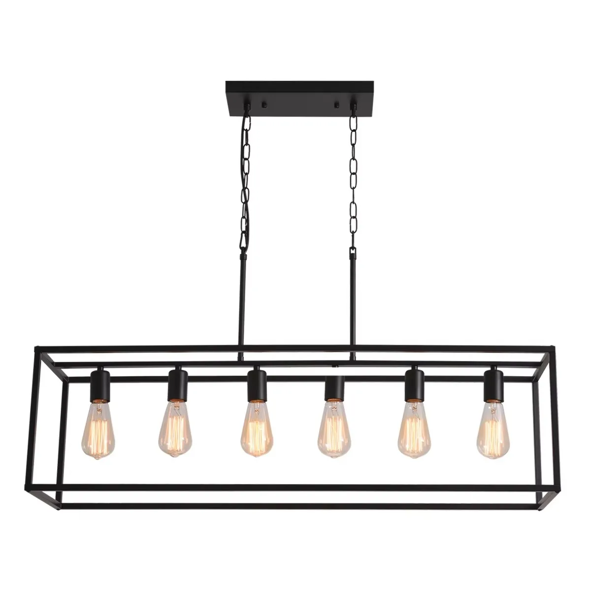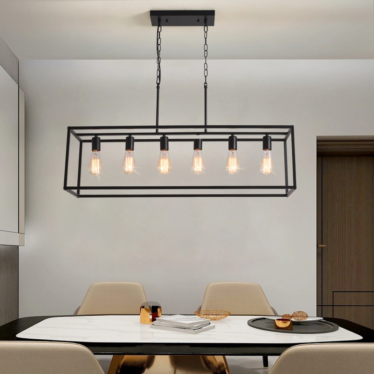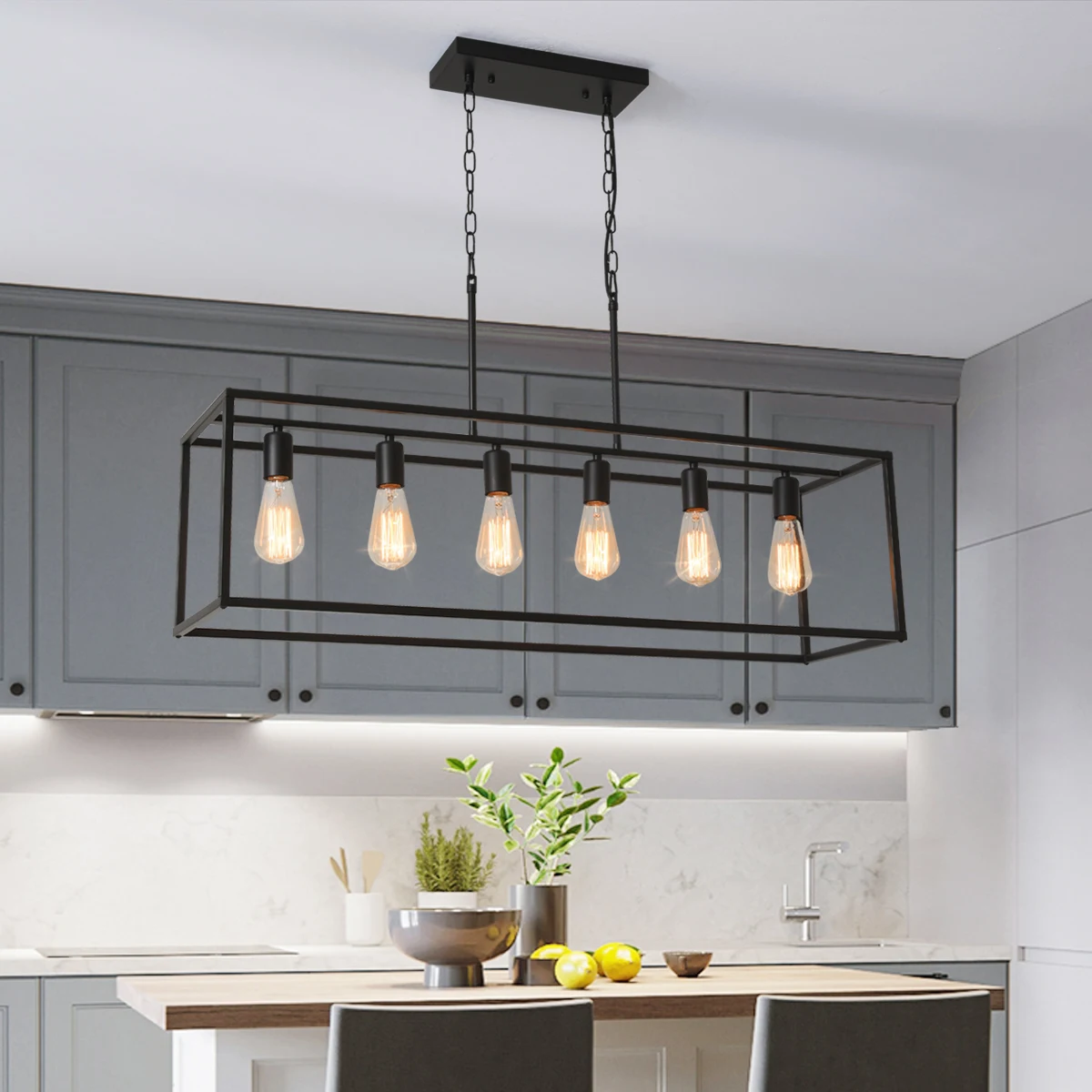 The Garwarm 6-Light Rectangle Farmhouse Chandelier combines modern simplicity with rustic charm, making it a perfect lighting solution for your kitchen island, dining room, living room, or bar area. Designed with a sleek black iron frame, this linear chandelier enhances any interior with its elegant industrial style.
