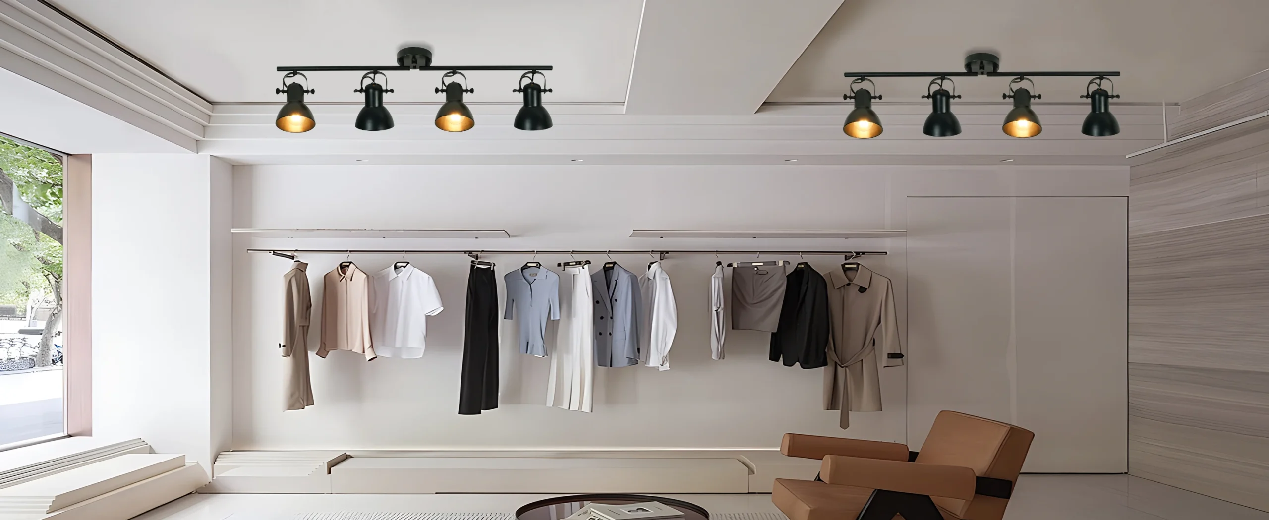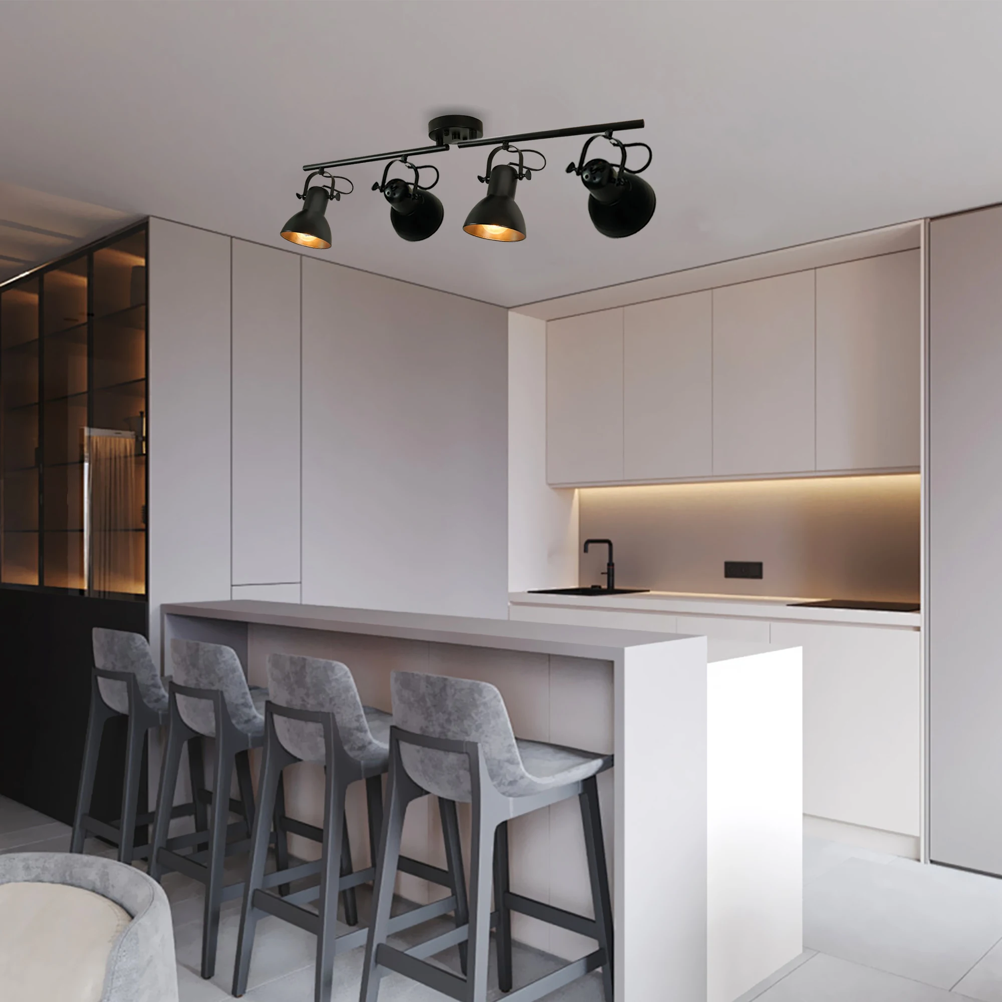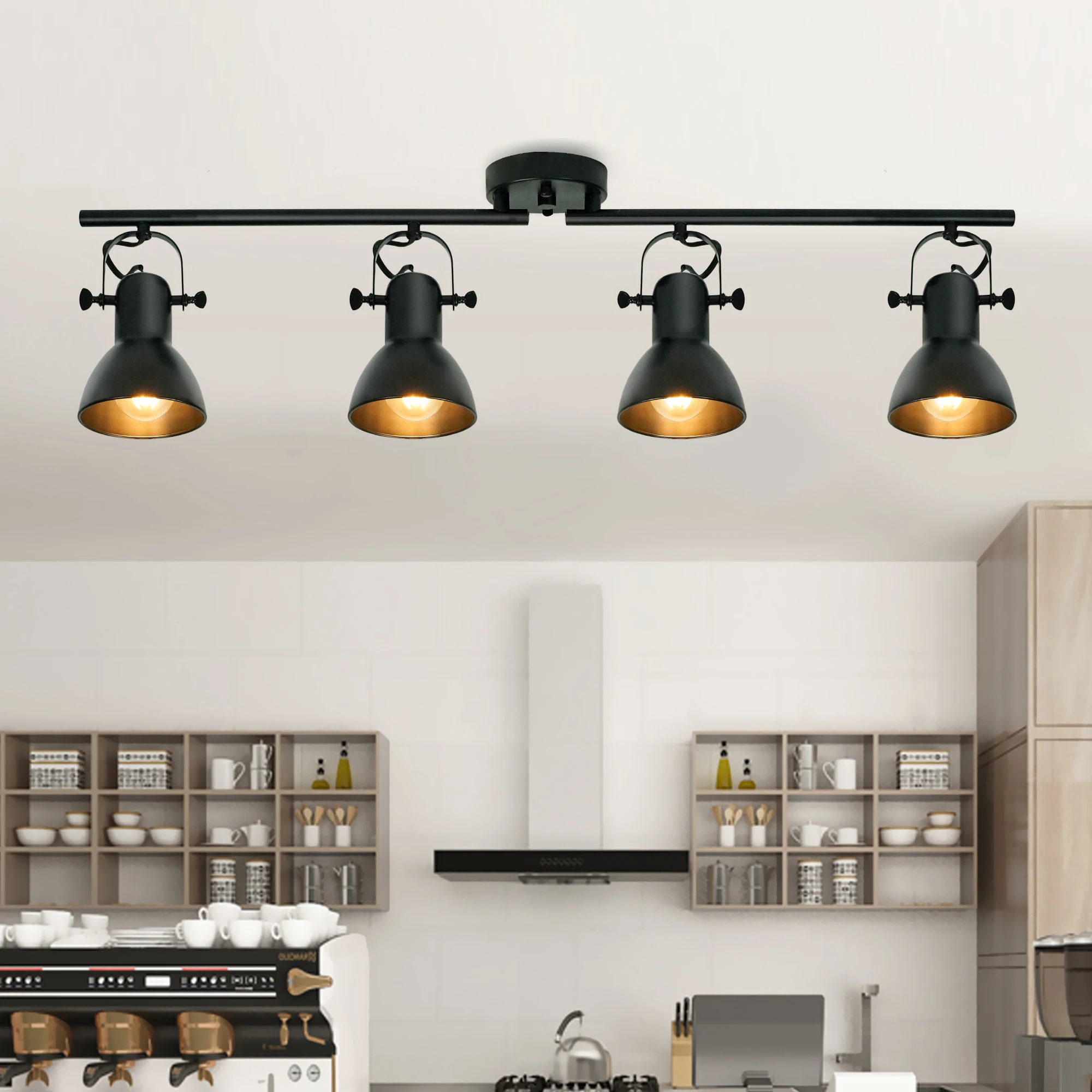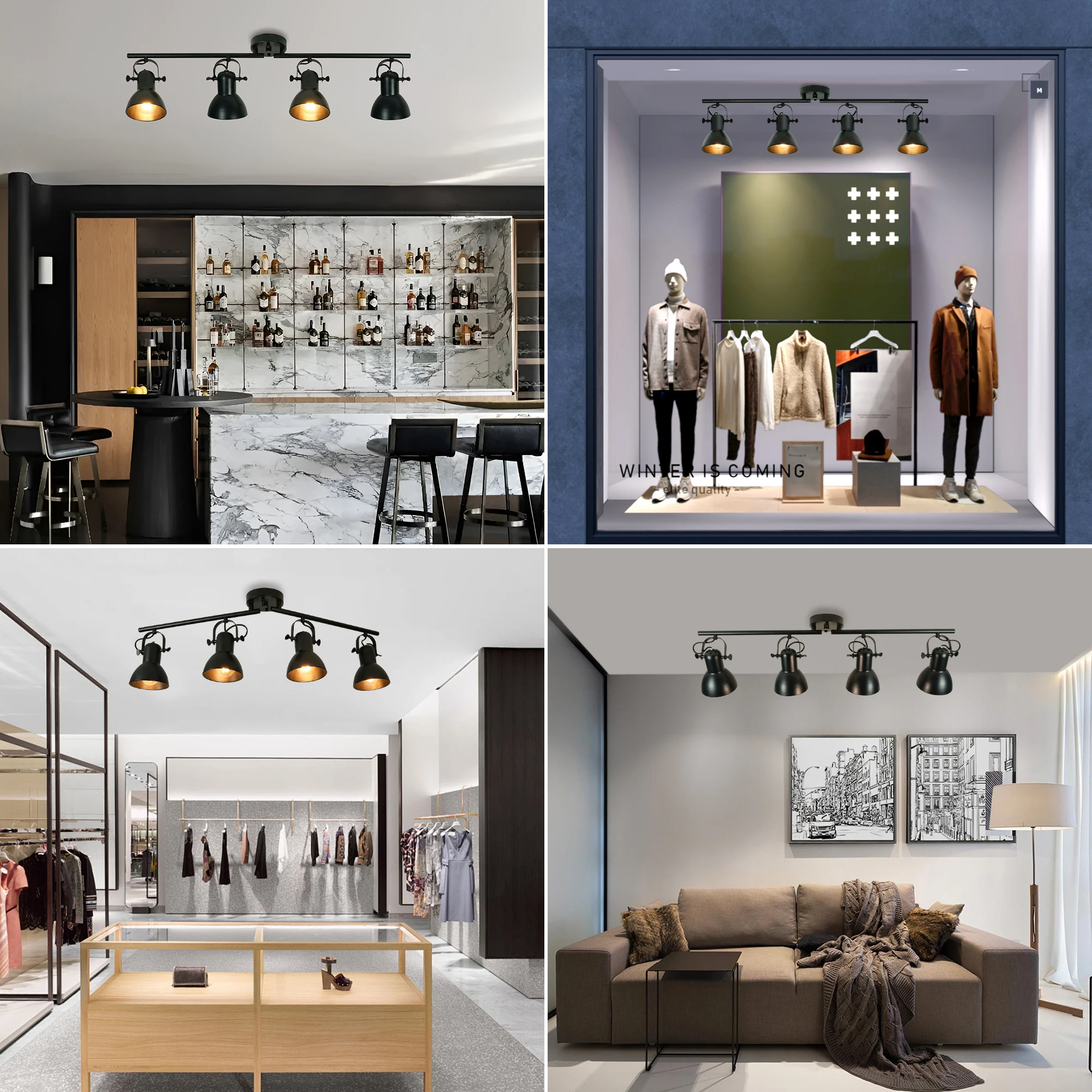 Enhance your home or workspace with this Black Industrial Track Lighting Kit. Designed with four adjustable lamp heads, this ceiling fixture provides versatile and focused illumination, making it perfect for kitchens, galleries, exhibition halls, or over a billiard table. Its sleek black metal body complements both modern and industrial interiors, adding style as well as functionality. Easy to install and built to last, this track lighting system is a practical and decorative choice