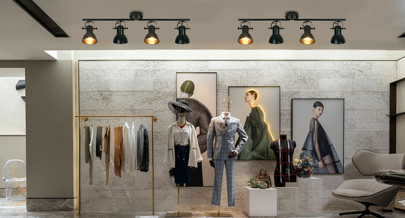 Black Industrial Track Lighting – 4-Light Ceiling Fixture