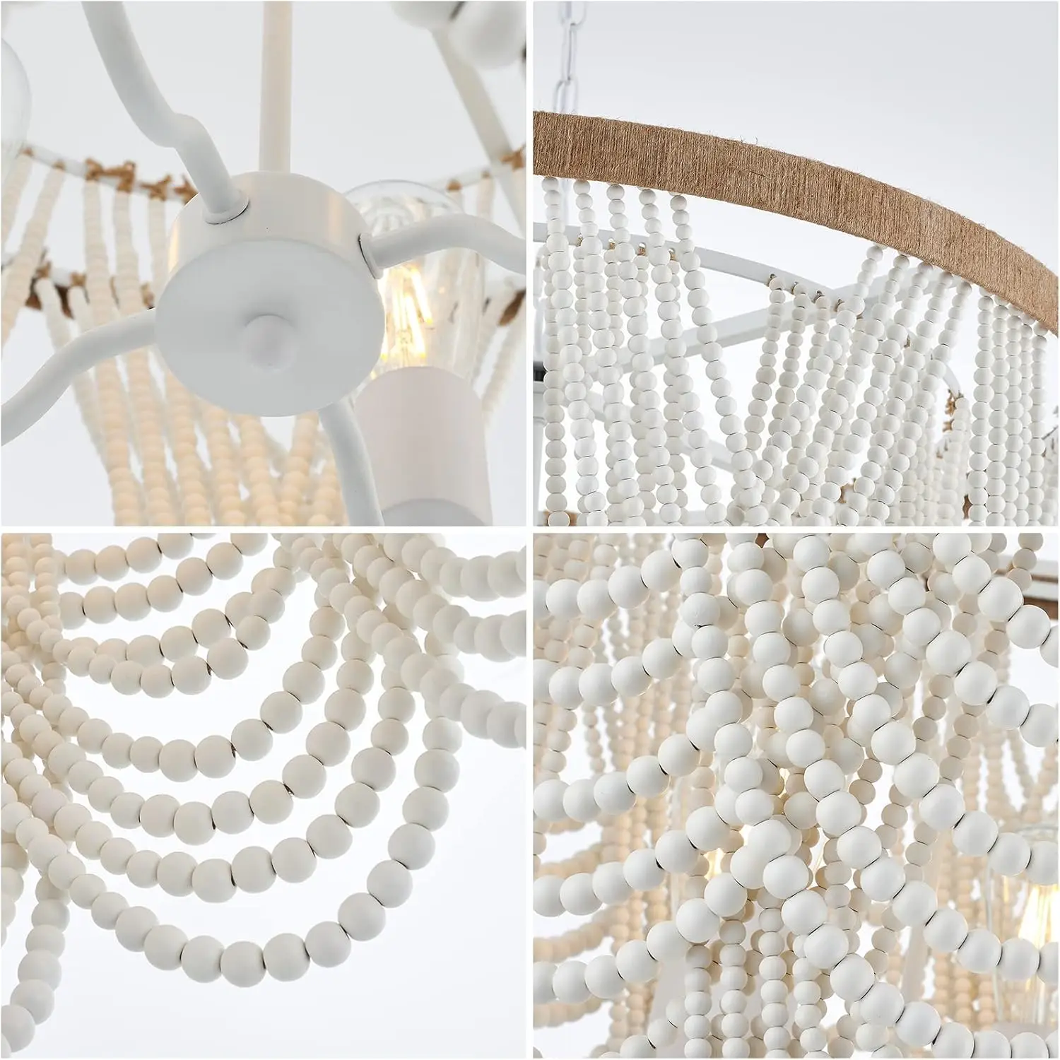 This Boho Wood Beaded Chandelier combines rustic charm with modern farmhouse style, featuring a sturdy iron frame paired with natural wood elements. Designed for easy installation and compatibility with sloped ceilings, it suits any room type including living rooms, dining rooms, and entryways. The fixture supports dimmable incandescent bulbs with E26 bases, allowing you to customize your lighting ambiance effortlessly.