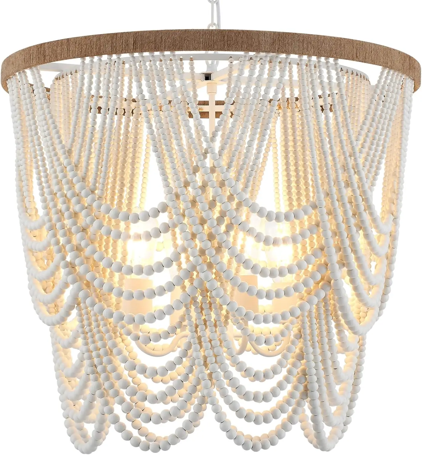 With a clean white finish and a weight of 6.91 KG, this chandelier offers both durability and style. Its versatile design fits perfectly in coastal, farmhouse, or bohemian interiors, providing a warm and inviting atmosphere. Backed by a 1-year warranty, it ensures long-lasting satisfaction.