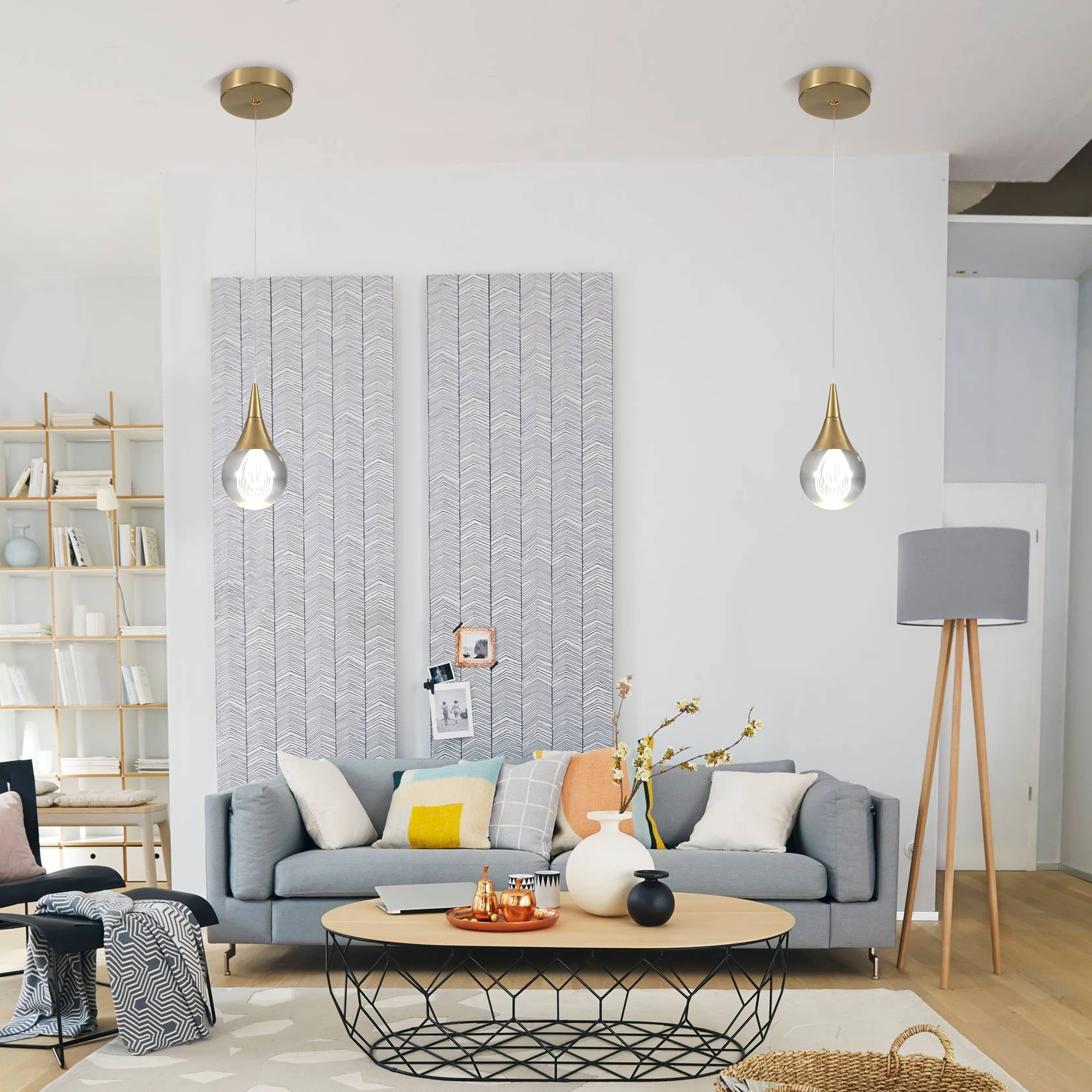 The Brass Golden Globe LED Pendant Light features a luxurious gold body paired with a clear acrylic round shade, creating a stunning light and shadow effect. Its sleek, modern design with an adjustable metal rod provides customizable height, making it a perfect fit for kitchens, bedrooms, or living spaces.