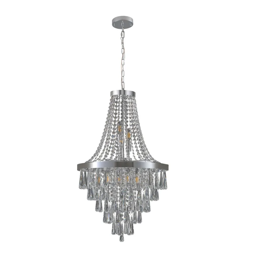 Bring elegance and sophistication to your home with this Chromium Crystal Chandelier. Designed in a large luxury contemporary style, this chandelier features a dazzling crystal arrangement that reflects light beautifully, creating a glamorous atmosphere in any space. Perfect for dining rooms, living rooms, foyers, or grand entryways, this ceiling light fixture is both decorative and functional. With its striking chromium finish and sparkling crystals, it makes a bold statement and instantly elevates your interior décor. Easy to assemble and built with durable materials, this chandelier offers timeless beauty and long-lasting performance. (Bulbs are not included.)