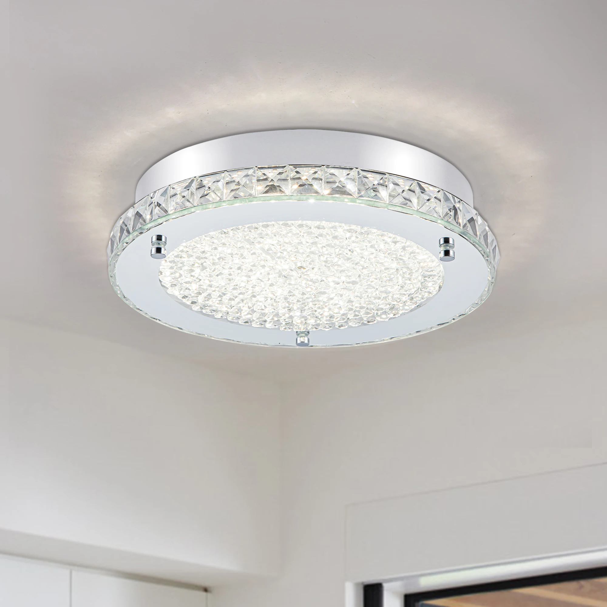 Add elegance and brightness to your home with this Crystal Flush Mount Ceiling Light Fixture. Designed with sparkling crystals and a polished chrome finish, this ceiling light creates a luxurious and modern touch to any space. Perfect for hallways, bedrooms, kitchens, or corridors, it provides brilliant illumination while enhancing the overall style of your interiors.
