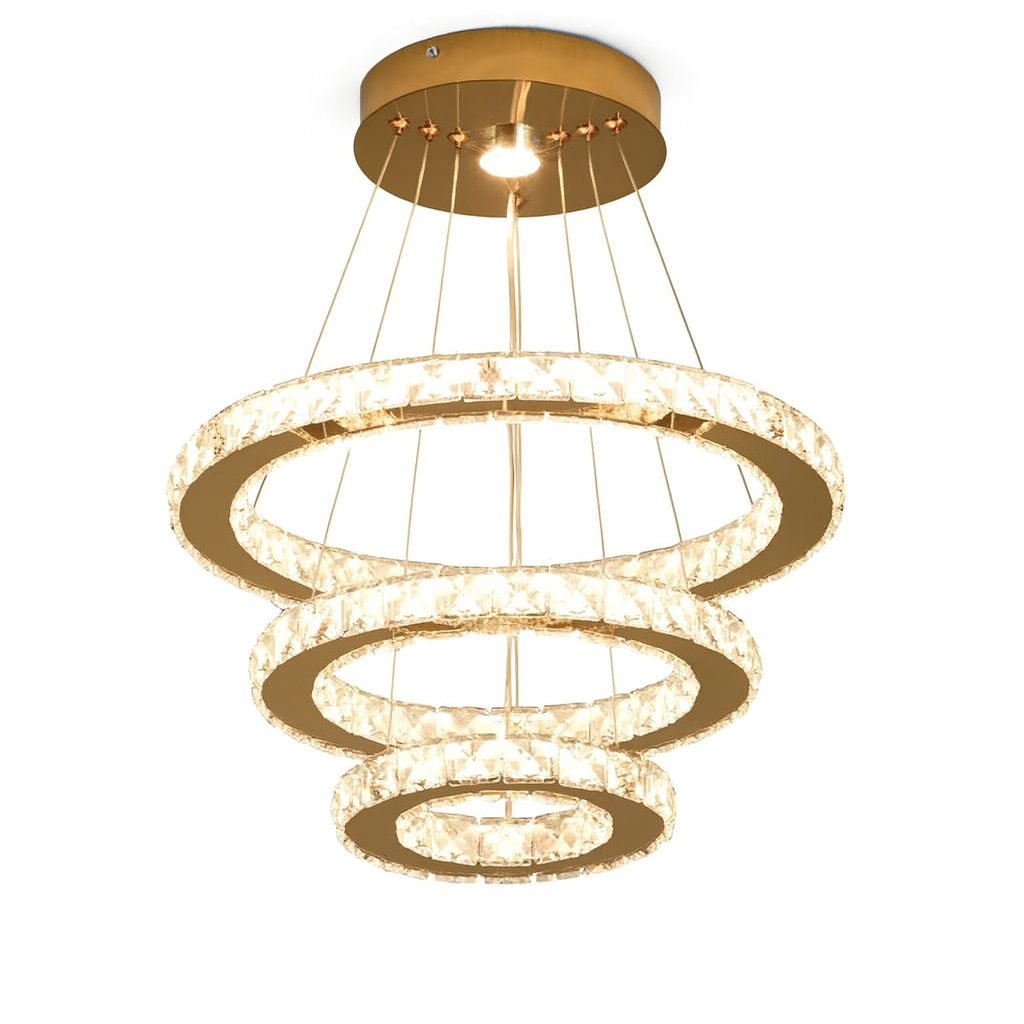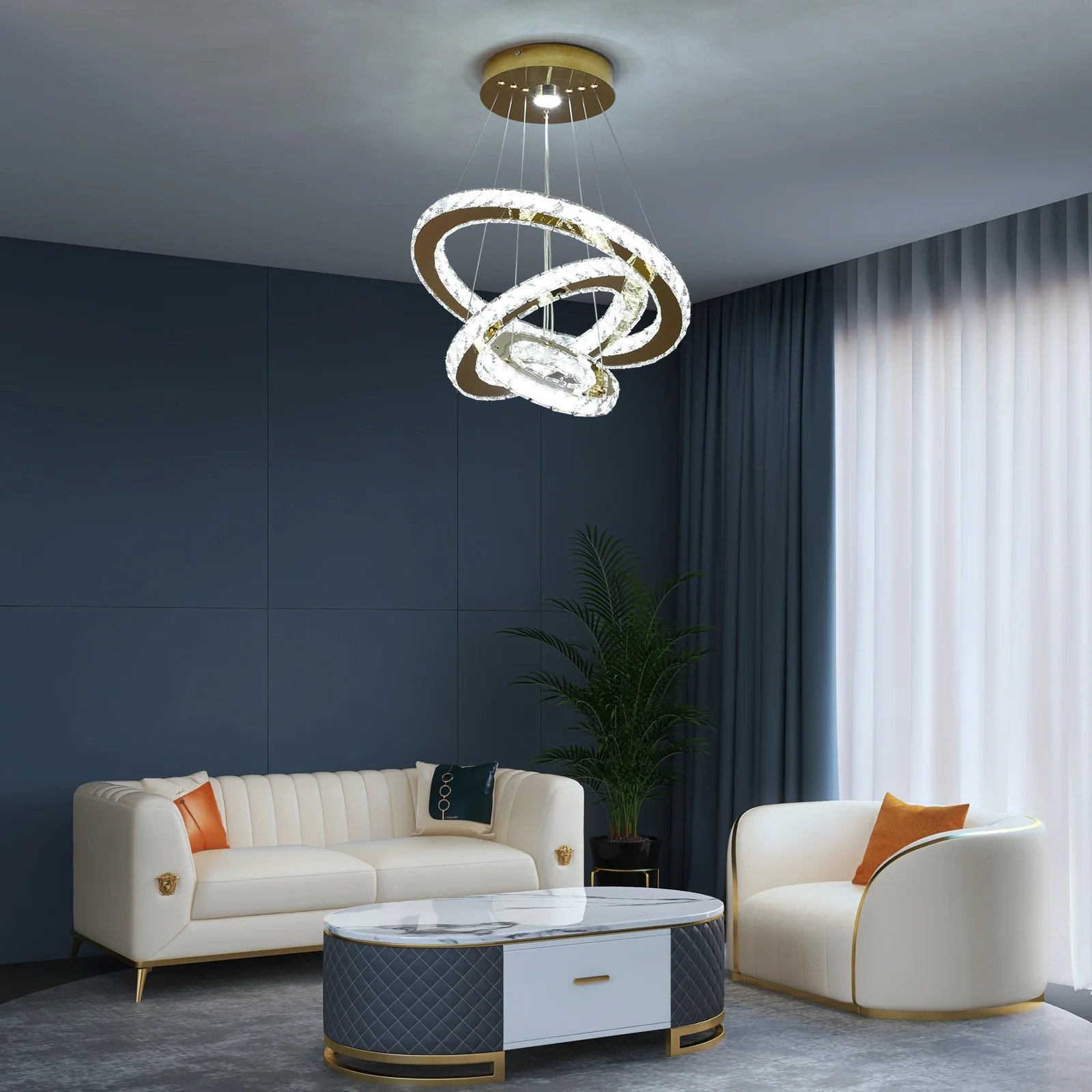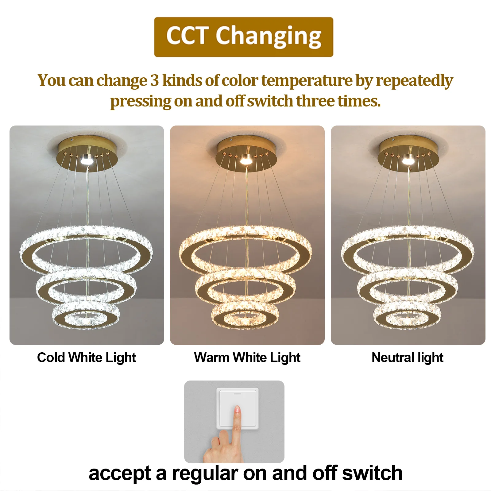 Featuring three cascading crystal rings (40cm + 30cm + 20cm), it delivers a stunning visual effect that sparkles from every angle. The polished chrome finish adds a contemporary touch, while the up-and-down crystal light direction ensures brilliant illumination.