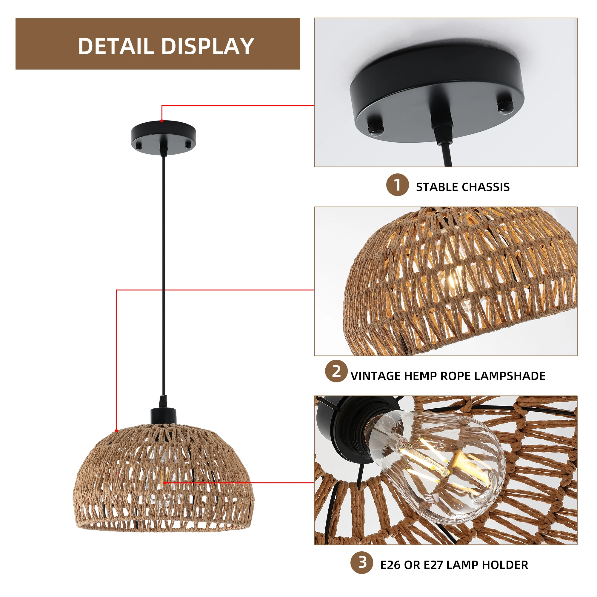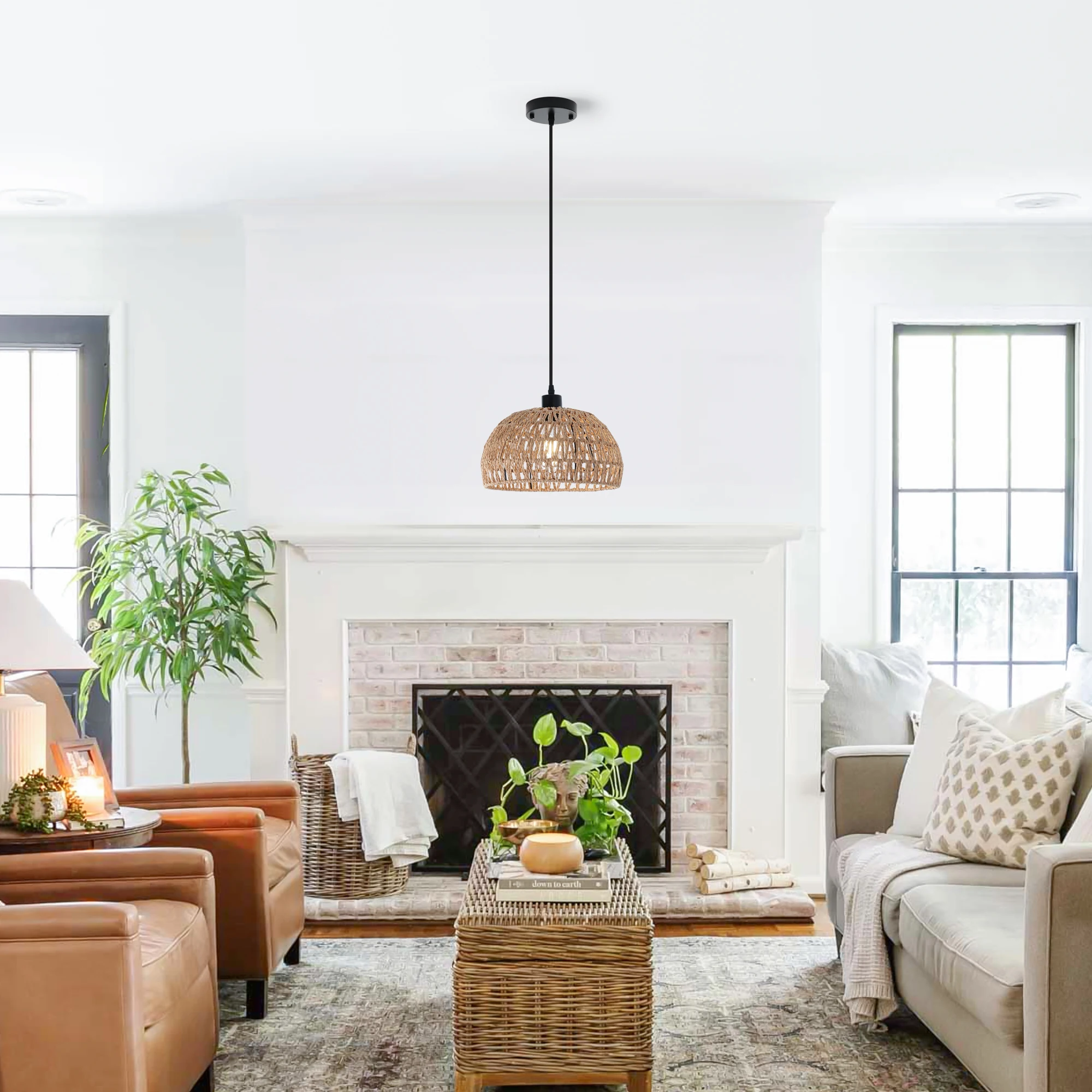 This dome-shaped rattan lampshade has an elegant and natural curvature, simple yet eye-catching. The mini rattan chandelier adds tropical elements to your space. Made from high-quality, eco-friendly woven rope, it is safe, sustainable, and stylish.