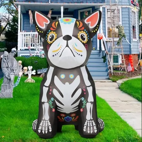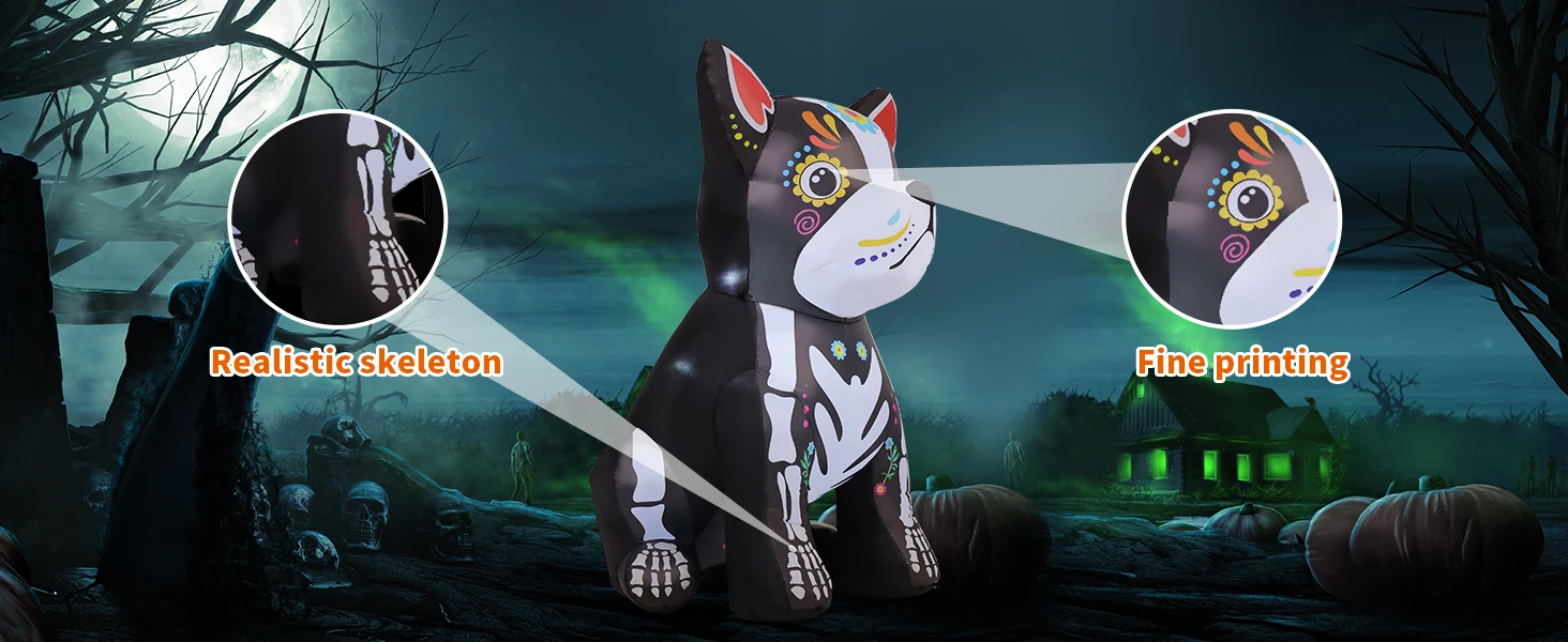 Get into the spooky spirit with the GOOSH 5ft Halloween Inflatable Skeleton Bulldog! Perfect for Halloween parties, yard displays, or Day of the Dead celebrations, this inflatable decoration adds a fun and spooky vibe to your outdoor space.