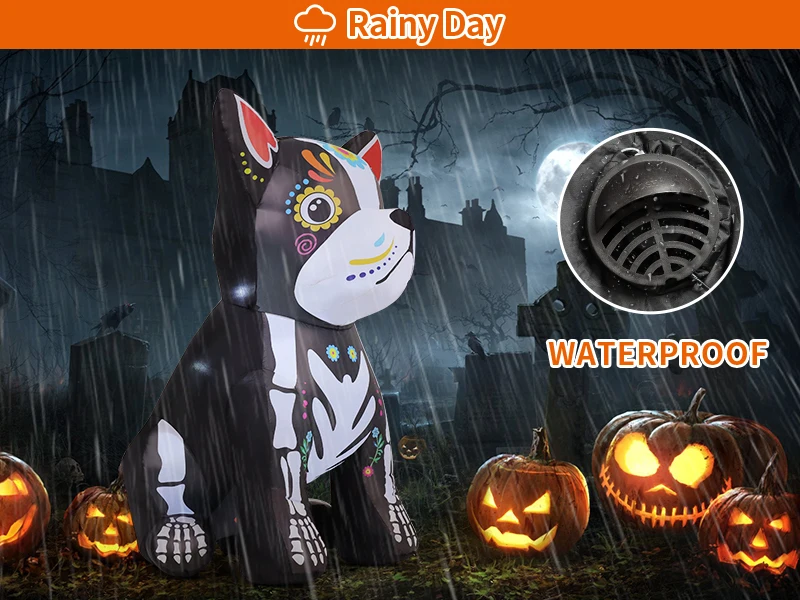 Celebrate Halloween with the GOOSH 5FT Inflatable Skeleton Bulldog, a spooky yet fun decoration that will capture everyone’s attention. Designed with bright built-in LED lights, this inflatable bulldog creates a glowing effect, making it perfect for night displays in your yard, garden, or lawn. Its skeleton-style design adds a unique twist to your outdoor Halloween decorations, sure to delight kids and guests alike. Easy to set up, durable, and weather-resistant, this inflatable is a must-have addition to your Halloween party supplies.
