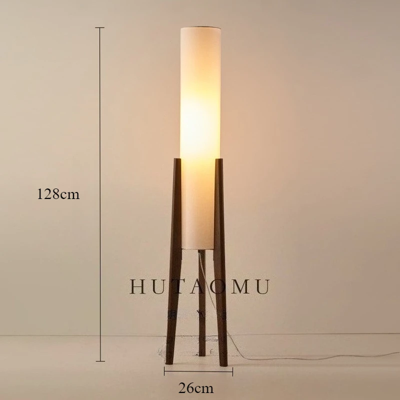 Japanese Wabi-Sabi Solid Wood Floor Lamp — Retro Decorative Standing Lamp (E27)