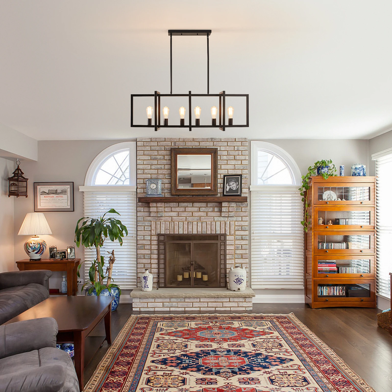 Upgrade your home lighting with this Modern 6-Light Industrial Pendant Light. Featuring a sleek matte black finish and durable iron body, this chandelier is designed to complement your kitchen island, dining room, living room, or bedroom. Its adjustable height and E26 bulb base make it versatile, stylish, and easy to install. Perfect for creating a warm, inviting atmosphere in any modern or farmhouse-style home.