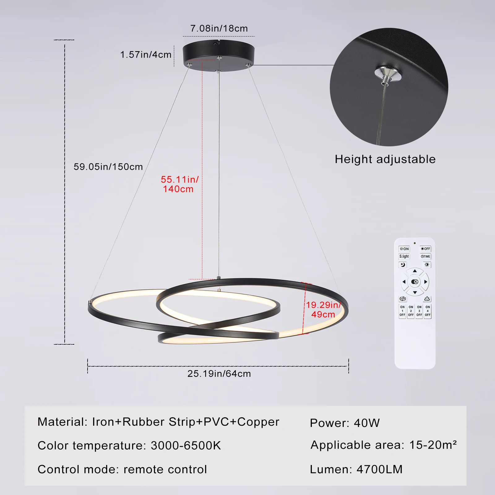 Upgrade your home lighting with the Garwarm Modern LED Pendant Ceiling Light, designed to blend style, functionality, and convenience. Featuring a sleek black finish with premium iron, PVC, and copper construction, this light is built for durability, rust resistance, and long-lasting performance.