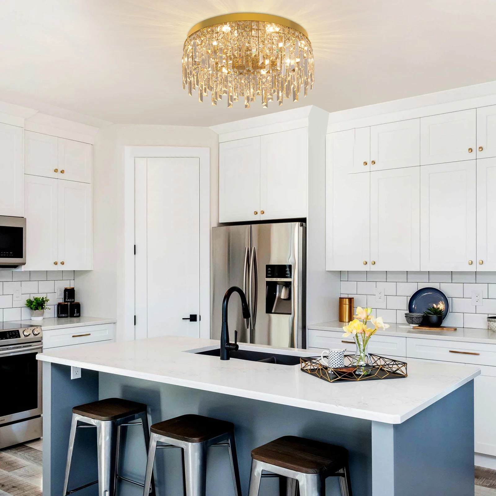 Elevate your home décor with the **Luxury Gold Crystal LED Ceiling Chandelier by VETRULUS**. Featuring high-quality crystals and a polished aluminum gold frame, this modern flush-mount chandelier adds elegance and sophistication to any room. Ideal for living rooms, bedrooms, studies, hallways, or hotel spaces, its sparkling crystals create a luxurious ambiance while offering bright, energy-efficient LED illumination.