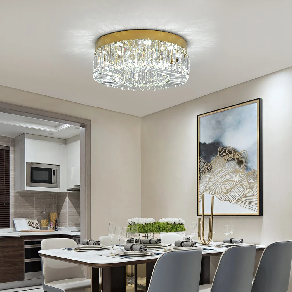 Enhance your home with the elegance of this Luxury Modern Gold Crystal Ceiling Light. Designed to bring sparkling illumination and high-end sophistication to any room, this chandelier-style ceiling lamp features premium stainless steel with finely cut crystals that create a stunning light effect. Perfect for living rooms, bedrooms, dining areas, kitchens, foyers, and corridors — this fixture adds a luxurious modern touch to every space. Easy to install and equipped with energy-efficient LED lighting, it delivers both style and performance for everyday lighting.