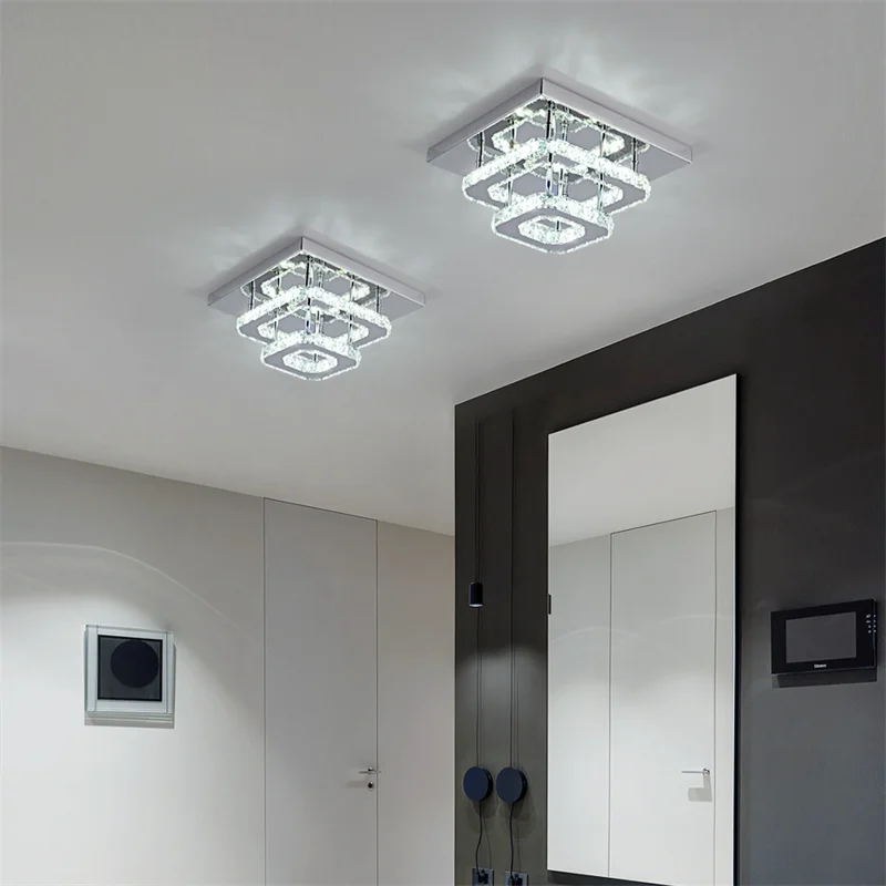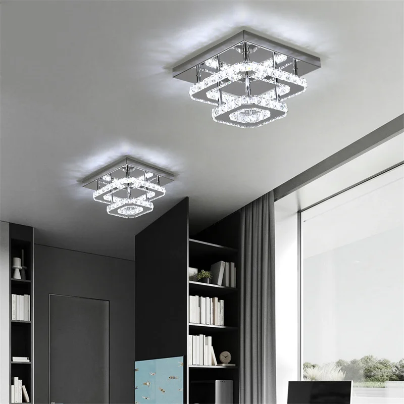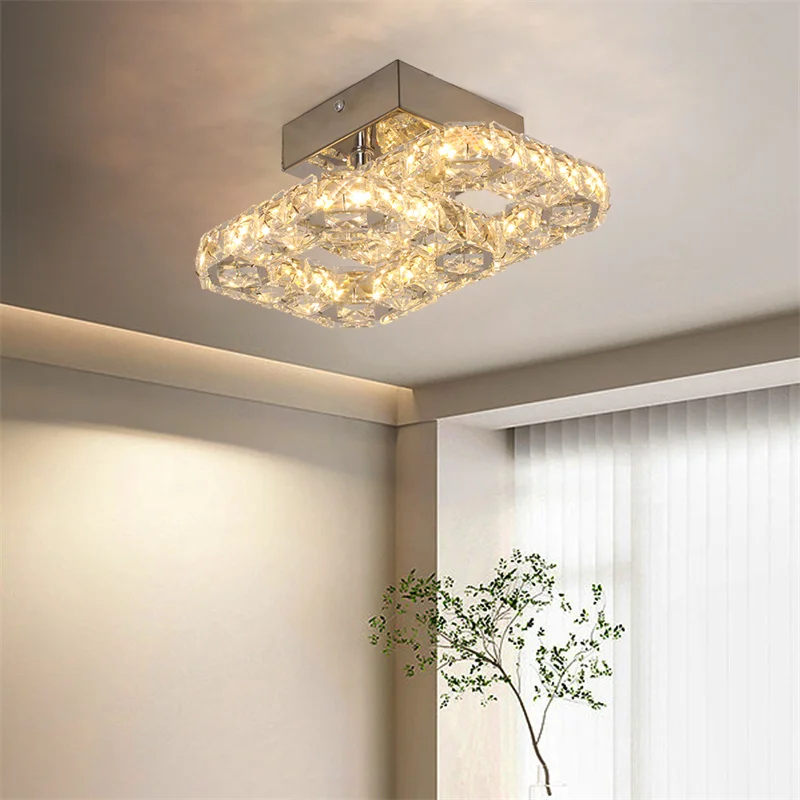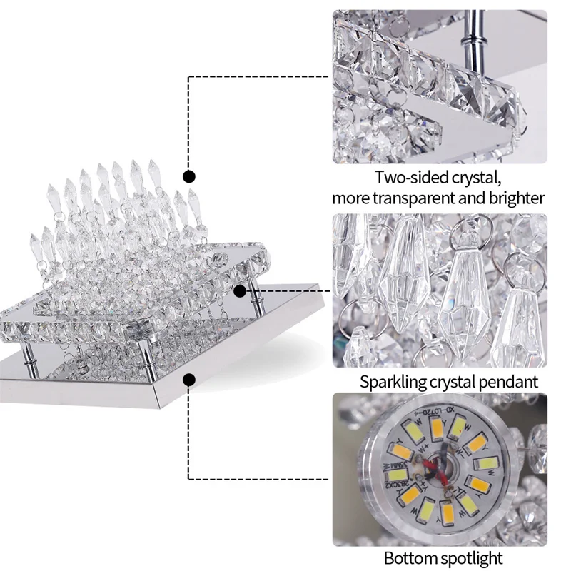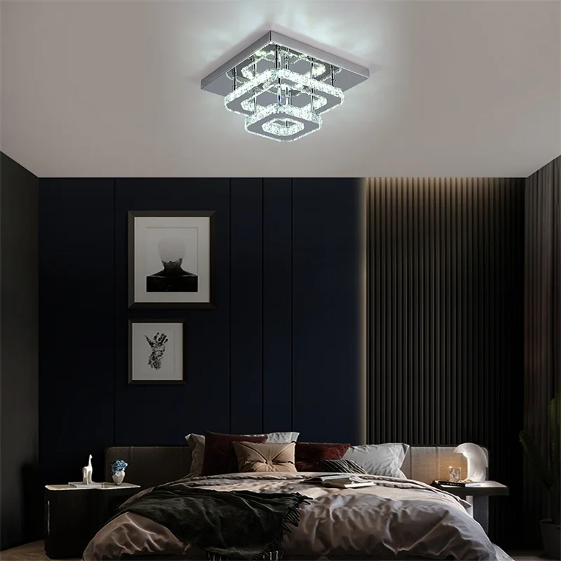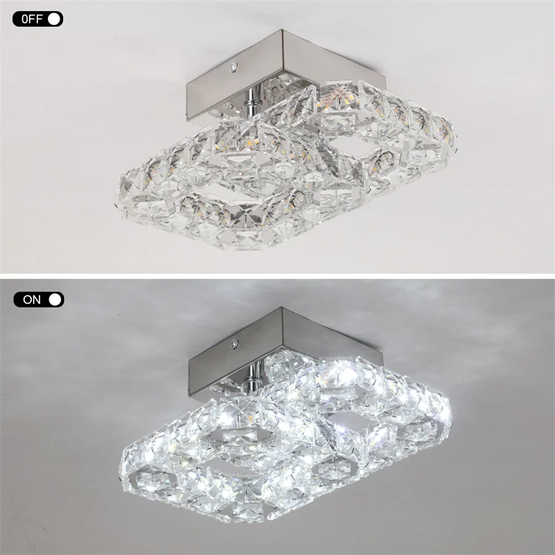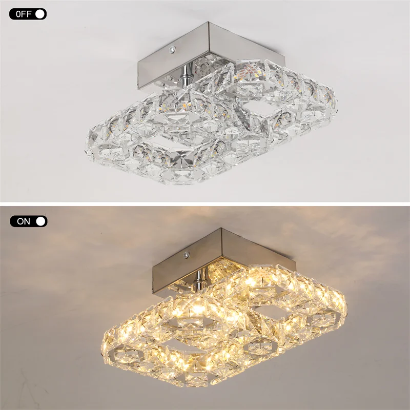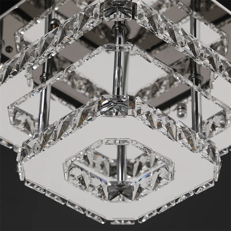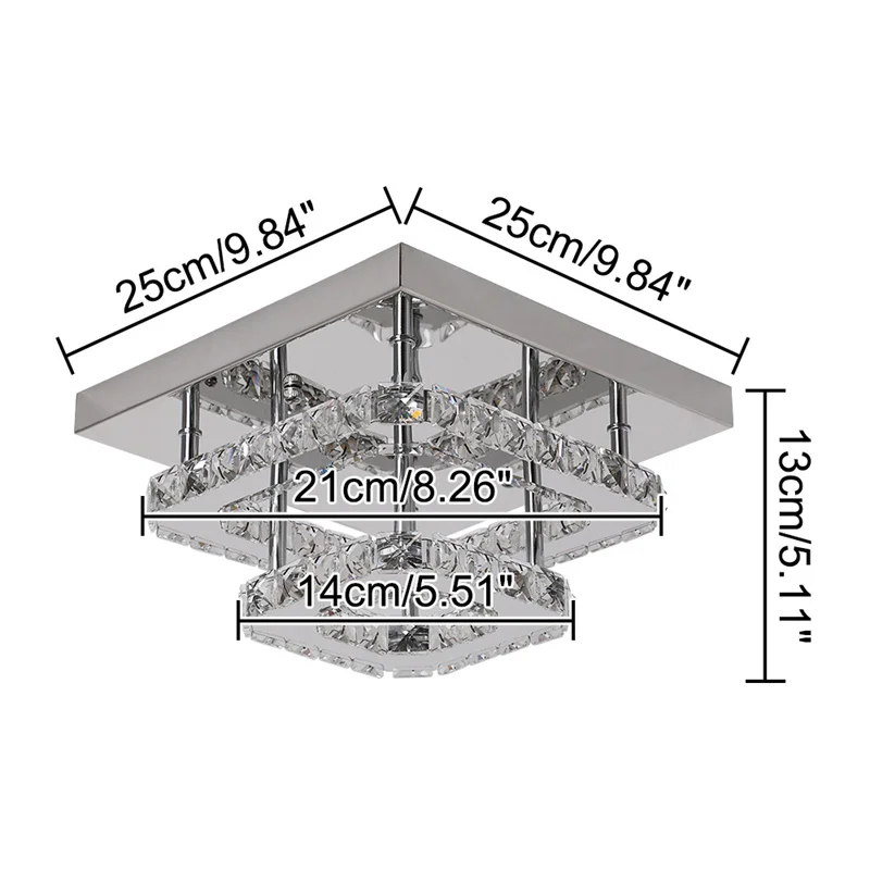 Enhance your home lighting with this Modern Square K9 Crystal LED Ceiling Light, designed to add elegance and brilliance to any interior. Featuring high-quality crystals and a durable brushed stainless steel frame, it creates a sparkling lighting effect that elevates hallways, foyers, bedrooms, dining rooms, and more.