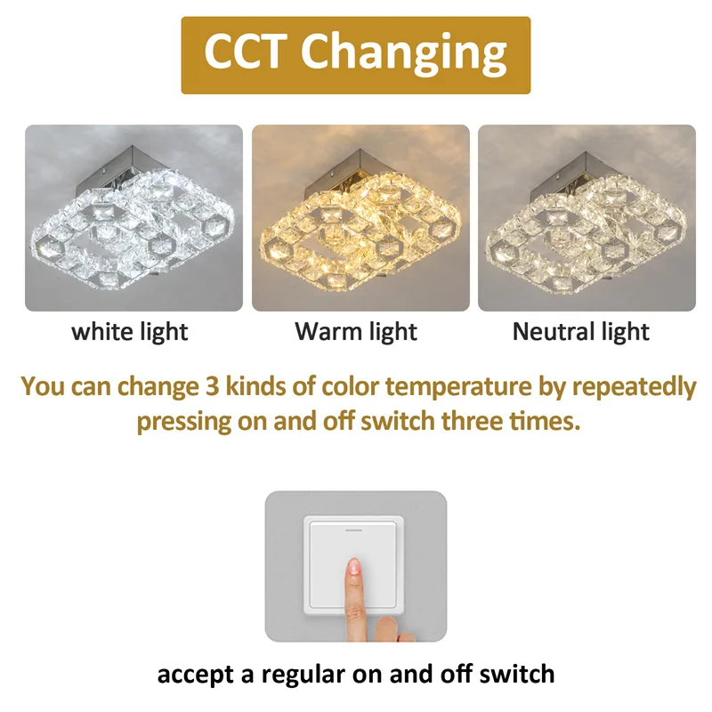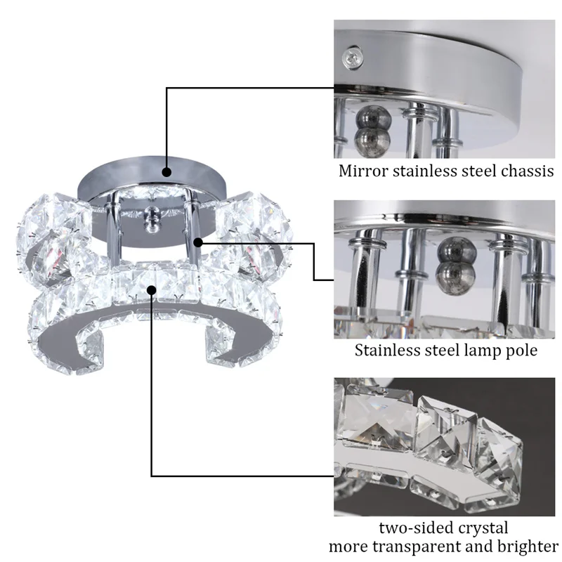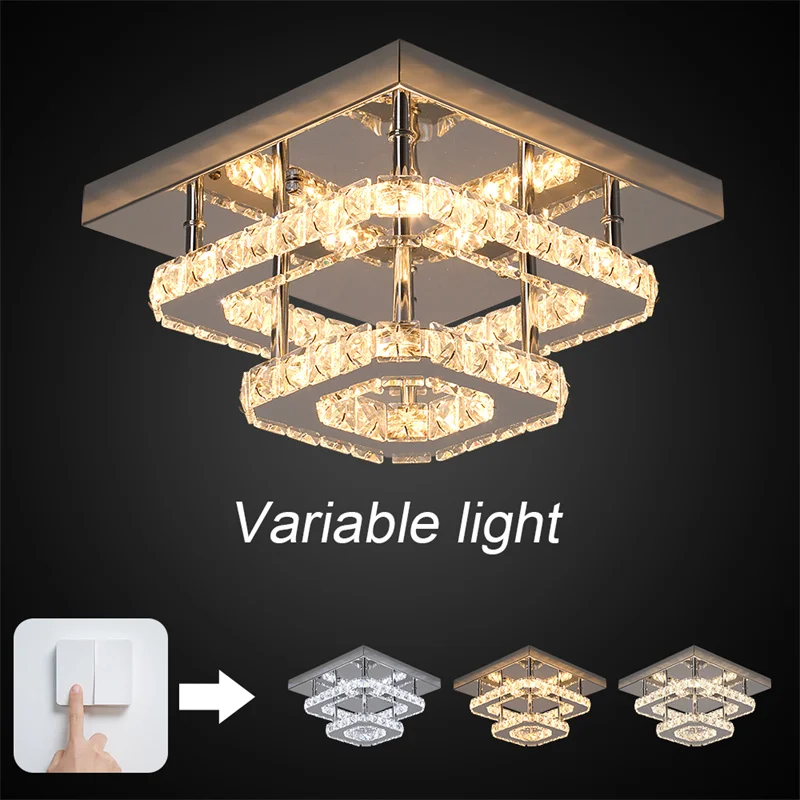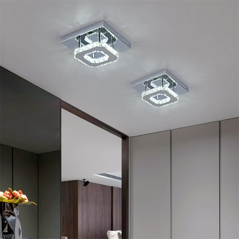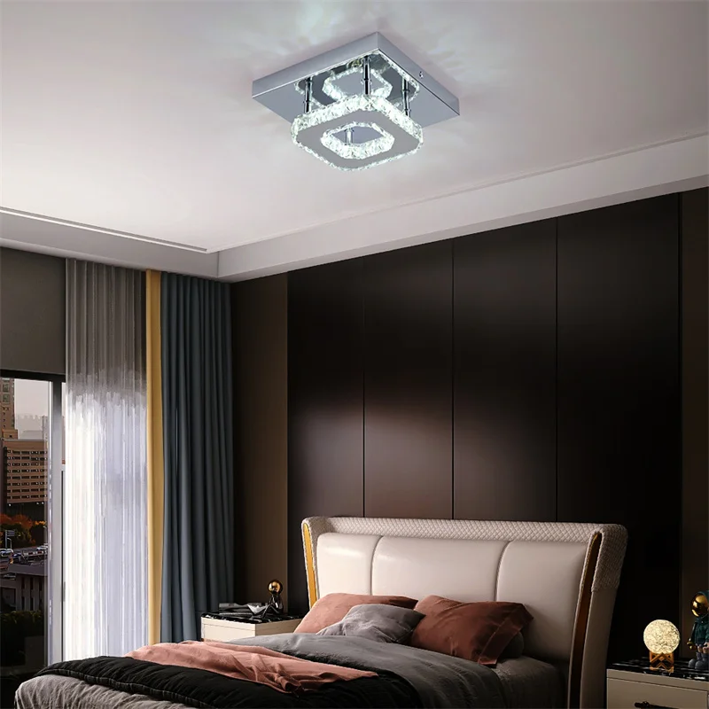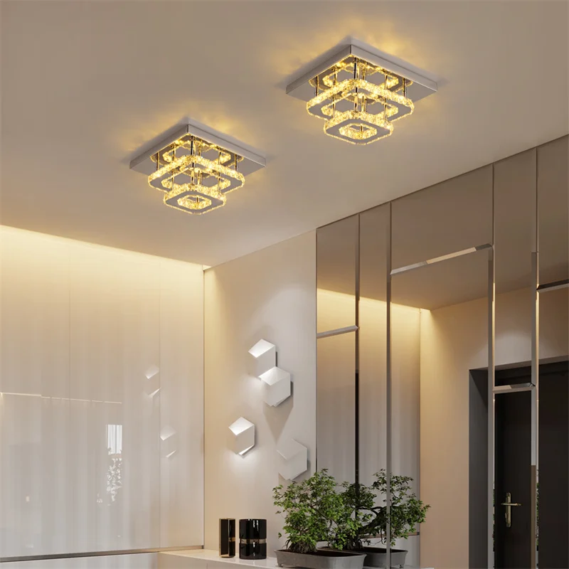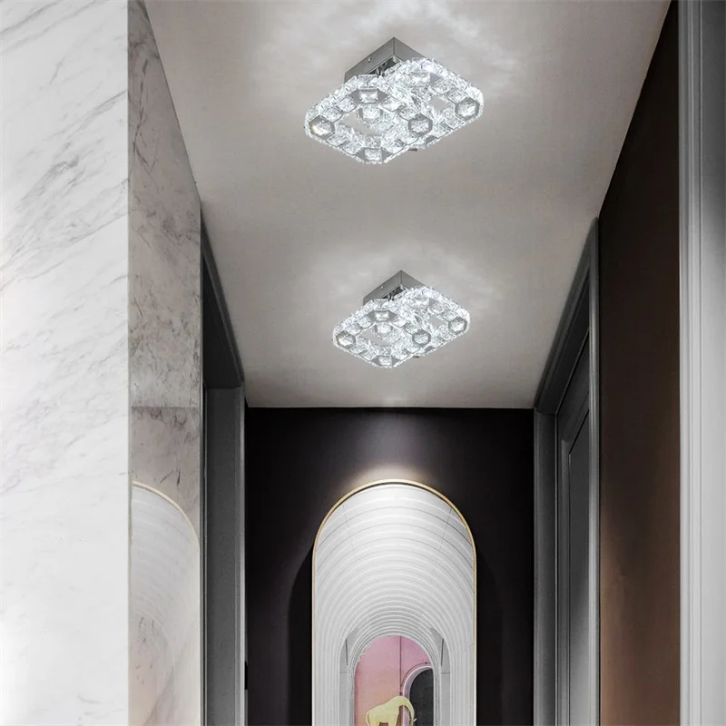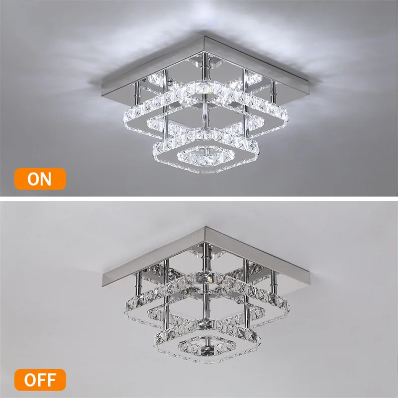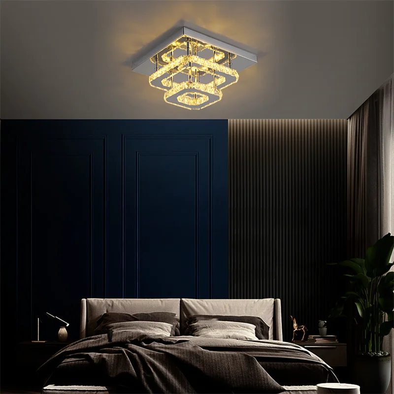 Enhance your home lighting with this Modern Square K9 Crystal LED Ceiling Light, designed to add elegance and brilliance to any interior. Featuring high-quality crystals and a durable brushed stainless steel frame, it creates a sparkling lighting effect that elevates hallways, foyers, bedrooms, dining rooms, and more.