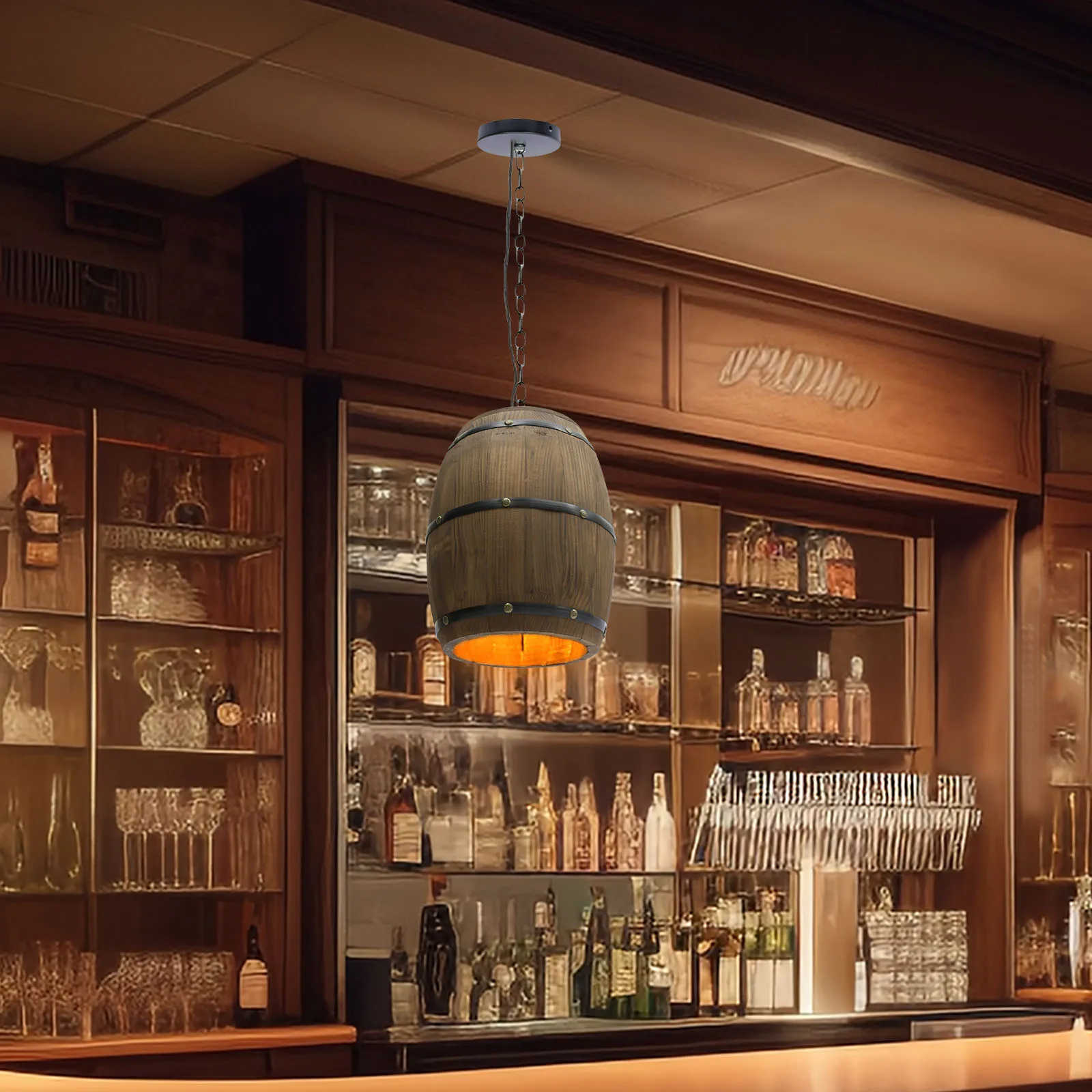 - 1 × Chandelier (wine-barrel pendant shade)